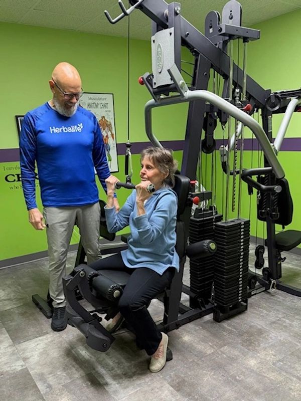 Check out this great video of Linda doing a shoulder press, with Coach Michael looking on.